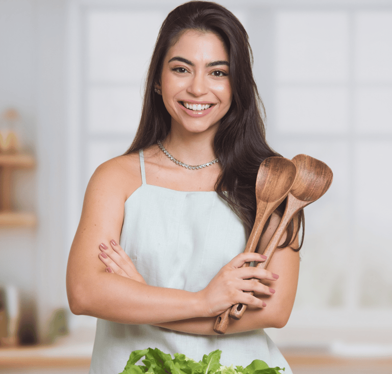 Ela entende as dificuldades de manter uma alimentação saudável na correria do dia a dia e, por isso, criou essa plataforma para ajudar você a alcançar seus objetivos de forma prática e saborosa.